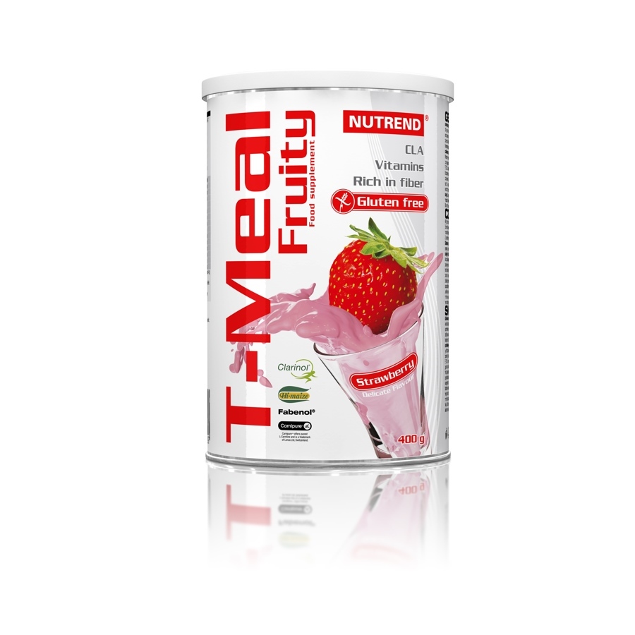 Strawberry: maltodextrin, calcium caseinate, whey protein concentrate, soy protein isolate, aroma, inulin, corn starch Hi-Maize®, freeze-dried strawberry 5 %, milk protein isolate, emulsifier soy lecithin, Clarinol® (vegetable - safflower oil, rich in conjugated linoleic acid – CLA 57 %, glucose syrup, sodium caseinate, anti-caking agent E 551, emulsifier E 322, stabiliser E 450, antioxidant E 306), tapioca starch, thickener guar gum, vitamin premix (L-ascorbic acid, DL-α-tocopherol acetate, nicotinamide, calcium D-pantothenate, cyanocobalamin, pyridoxine hydrochloride, riboflavin, thiamine mononitrate, folic acid, biotin), thickener carboxymethylcellulose sodium salt, L-carnitine tartrate, anti-caking agents calcium phosphate and silicon dioxide, sweetener sucralose, extract from beans seeds Fabenol®, sweetener acesulfame K, colouring agent carmine. Allergens: lactose, soya.