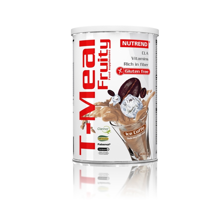 Ice coffee: maltodextrin, calcium caseinate, whey protein concentrate, soy protein isolate, aroma, inulin, corn starch Hi-Maize®, dark chocolate drops 5 % (cocoa mass, sugar, vegetable fat (palm, shea, illipe, sal, kokum, mango), cocoa, emulsifier soy lecithin), milk protein isolate, emulsifier soy lecithin, Clarinol® (vegetable - safflower oil, rich in conjugated linoleic acid – CLA 57 %, glucose syrup, sodium caseinate, anti-caking agent E551, emulsifier E 322, stabiliser E 450, antioxidant E 306), tapioca starch, thickener guar gum, vitamin premix (L-ascorbic acid, DL-α -tocopherol acetate, nicotinamide, calcium D-pantothenate, cyanocobalamin, pyridoxine hydrochloride, riboflavin, thiamine mononitrate, folic acid, biotin), thickener carboxymethylcellulose sodium salt, colouring agent caramel, L-carnitine tartrate, anti-caking agents calcium phosphate and silicon dioxide, sweetener sucralose, extract from beans seeds Fabenol®, sweetener acesulfame K. Allergens: lactose, soya.