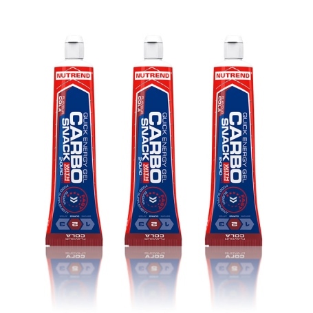 CARBOSNACK WITH CAFFEINE tuba složení: voda, glukóza, maltodextrin, taurin, glycin, zahušťovadlo xantanová guma, emulze cola (aroma, barvivo E-150d), regulátory kyselosti kyselina jablečná a kyselina citronová, kofein, konzervanty benzoan sodný a kyselina sorbová.